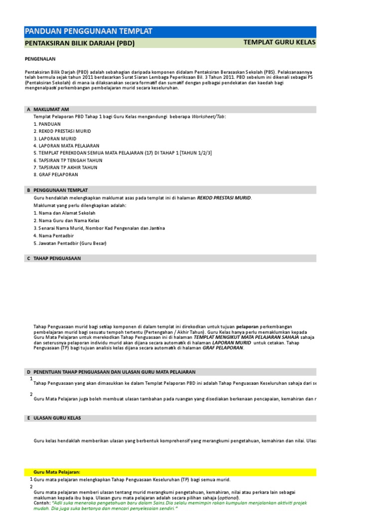 1a - Templat Pelaporan PBD Tahun 1 PDF