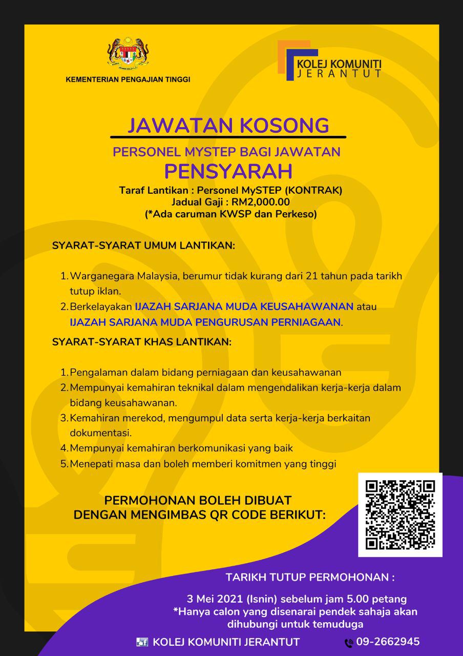 Jawatan Kosong Sebagai Pensyarah di Kolej Komuniti Jawatan